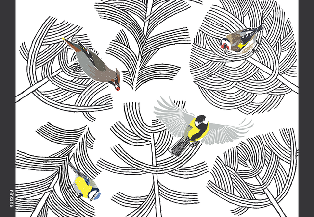 Luonnonvalkoinen pohja, puuvilla 55 %, pellava 45 %.