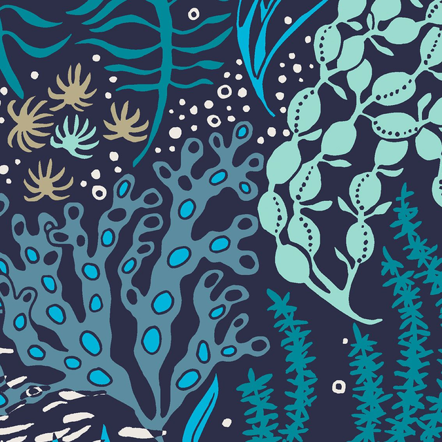 Erin.k Jewelleryn (AUS) The Reef -sarjan kevyet korvakorut, joissa Kirsi Sundellin suunnittelema kuosi Vedenalainen puutarha. Alumiinia ja sterling-hopeaa. Leveys leveimmästä kohdasta 30 mm.